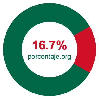 Empezamos por mostrarle el gráfico circular a continuación. Primero, coloreamos el círculo entero en verde. Luego, recortamos el 16.7 por ciento del círculo y lo coloreamos en rojo.