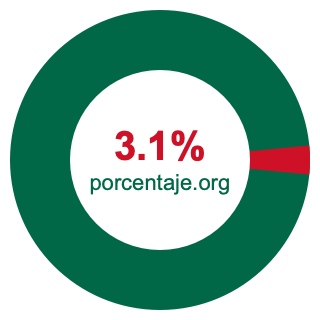 Empezamos por mostrarle el gráfico circular a continuación. Primero, coloreamos el círculo entero en verde. Luego, recortamos el 3.1 por ciento del círculo y lo coloreamos en rojo.