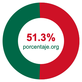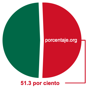 Empezamos por mostrarle el gráfico circular a continuación. Primero, coloreamos el círculo entero en verde. Luego, recortamos el 51.3 por ciento del círculo y lo coloreamos en rojo.