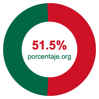 Empezamos por mostrarle el gráfico circular a continuación. Primero, coloreamos el círculo entero en verde. Luego, recortamos el 51.5 por ciento del círculo y lo coloreamos en rojo.