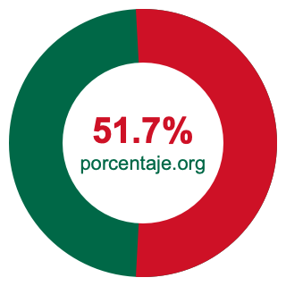 Empezamos por mostrarle el gráfico circular a continuación. Primero, coloreamos el círculo entero en verde. Luego, recortamos el 51.7 por ciento del círculo y lo coloreamos en rojo.