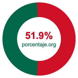 Empezamos por mostrarle el gráfico circular a continuación. Primero, coloreamos el círculo entero en verde. Luego, recortamos el 51.9 por ciento del círculo y lo coloreamos en rojo.