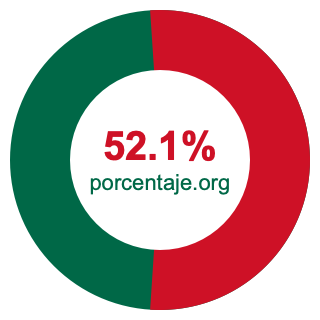 Empezamos por mostrarle el gráfico circular a continuación. Primero, coloreamos el círculo entero en verde. Luego, recortamos el 52.1 por ciento del círculo y lo coloreamos en rojo.