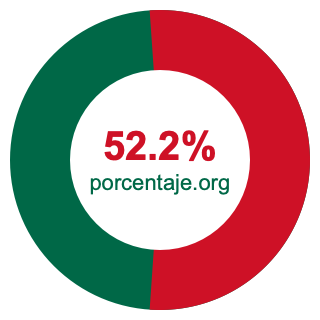El recorte rojo anterior es el 52.2 por ciento del círculo entero. El círculo entero es el 100 por ciento, lo que significa que puede calcular el por ciento de la parte verde del círculo entero como esto: 100 - 52.2 = 47.8