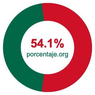 Empezamos por mostrarle el gráfico circular a continuación. Primero, coloreamos el círculo entero en verde. Luego, recortamos el 54.1 por ciento del círculo y lo coloreamos en rojo.