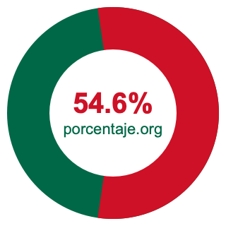 Empezamos por mostrarle el gráfico circular a continuación. Primero, coloreamos el círculo entero en verde. Luego, recortamos el 54.6 por ciento del círculo y lo coloreamos en rojo.