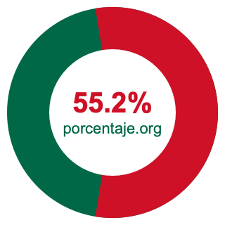 Empezamos por mostrarle el gráfico circular a continuación. Primero, coloreamos el círculo entero en verde. Luego, recortamos el 55.2 por ciento del círculo y lo coloreamos en rojo.