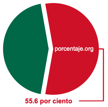 Empezamos por mostrarle el gráfico circular a continuación. Primero, coloreamos el círculo entero en verde. Luego, recortamos el 55.6 por ciento del círculo y lo coloreamos en rojo.