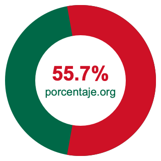 Empezamos por mostrarle el gráfico circular a continuación. Primero, coloreamos el círculo entero en verde. Luego, recortamos el 55.7 por ciento del círculo y lo coloreamos en rojo.