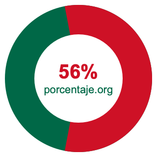 Empezamos por mostrarle el gráfico circular a continuación. Primero, coloreamos el círculo entero en verde. Luego, recortamos el 56 por ciento del círculo y lo coloreamos en rojo.