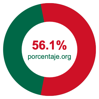 Empezamos por mostrarle el gráfico circular a continuación. Primero, coloreamos el círculo entero en verde. Luego, recortamos el 56.1 por ciento del círculo y lo coloreamos en rojo.