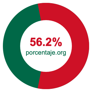 Empezamos por mostrarle el gráfico circular a continuación. Primero, coloreamos el círculo entero en verde. Luego, recortamos el 56.2 por ciento del círculo y lo coloreamos en rojo.