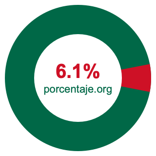 Empezamos por mostrarle el gráfico circular a continuación. Primero, coloreamos el círculo entero en verde. Luego, recortamos el 6.1 por ciento del círculo y lo coloreamos en rojo.