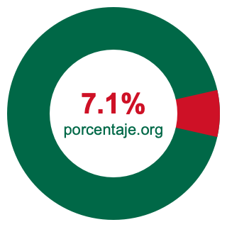 Empezamos por mostrarle el gráfico circular a continuación. Primero, coloreamos el círculo entero en verde. Luego, recortamos el 7.1 por ciento del círculo y lo coloreamos en rojo.