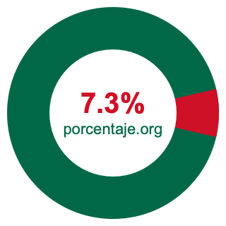 Empezamos por mostrarle el gráfico circular a continuación. Primero, coloreamos el círculo entero en verde. Luego, recortamos el 7.3 por ciento del círculo y lo coloreamos en rojo.
