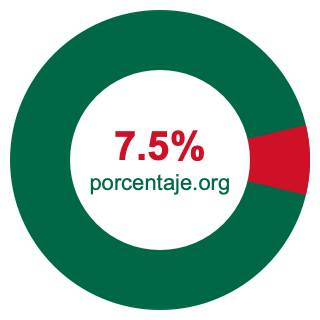 Empezamos por mostrarle el gráfico circular a continuación. Primero, coloreamos el círculo entero en verde. Luego, recortamos el 7.5 por ciento del círculo y lo coloreamos en rojo.