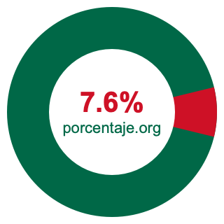 Empezamos por mostrarle el gráfico circular a continuación. Primero, coloreamos el círculo entero en verde. Luego, recortamos el 7.6 por ciento del círculo y lo coloreamos en rojo.