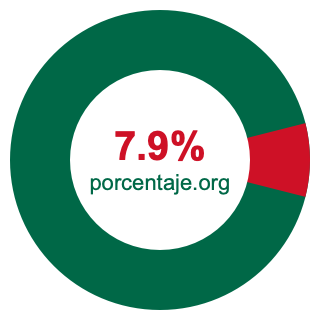 Empezamos por mostrarle el gráfico circular a continuación. Primero, coloreamos el círculo entero en verde. Luego, recortamos el 7.9 por ciento del círculo y lo coloreamos en rojo.