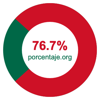Empezamos por mostrarle el gráfico circular a continuación. Primero, coloreamos el círculo entero en verde. Luego, recortamos el 76.7 por ciento del círculo y lo coloreamos en rojo.