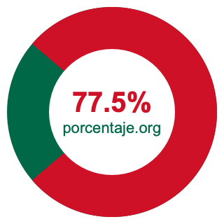 Empezamos por mostrarle el gráfico circular a continuación. Primero, coloreamos el círculo entero en verde. Luego, recortamos el 77.5 por ciento del círculo y lo coloreamos en rojo.