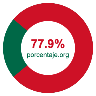Empezamos por mostrarle el gráfico circular a continuación. Primero, coloreamos el círculo entero en verde. Luego, recortamos el 77.9 por ciento del círculo y lo coloreamos en rojo.