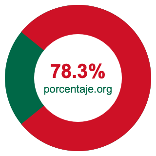 Empezamos por mostrarle el gráfico circular a continuación. Primero, coloreamos el círculo entero en verde. Luego, recortamos el 78.3 por ciento del círculo y lo coloreamos en rojo.