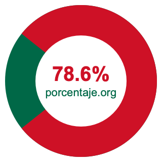 Empezamos por mostrarle el gráfico circular a continuación. Primero, coloreamos el círculo entero en verde. Luego, recortamos el 78.6 por ciento del círculo y lo coloreamos en rojo.