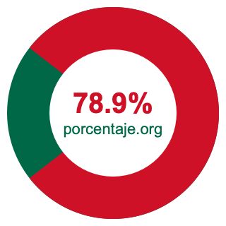 Empezamos por mostrarle el gráfico circular a continuación. Primero, coloreamos el círculo entero en verde. Luego, recortamos el 78.9 por ciento del círculo y lo coloreamos en rojo.