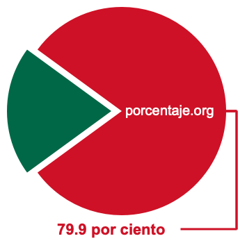 Empezamos por mostrarle el gráfico circular a continuación. Primero, coloreamos el círculo entero en verde. Luego, recortamos el 79.9 por ciento del círculo y lo coloreamos en rojo.