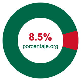 Empezamos por mostrarle el gráfico circular a continuación. Primero, coloreamos el círculo entero en verde. Luego, recortamos el 8.5 por ciento del círculo y lo coloreamos en rojo.