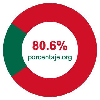 Empezamos por mostrarle el gráfico circular a continuación. Primero, coloreamos el círculo entero en verde. Luego, recortamos el 80.6 por ciento del círculo y lo coloreamos en rojo.