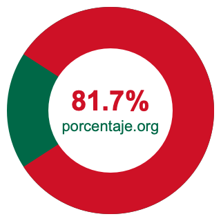Empezamos por mostrarle el gráfico circular a continuación. Primero, coloreamos el círculo entero en verde. Luego, recortamos el 81.7 por ciento del círculo y lo coloreamos en rojo.