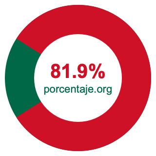 Empezamos por mostrarle el gráfico circular a continuación. Primero, coloreamos el círculo entero en verde. Luego, recortamos el 81.9 por ciento del círculo y lo coloreamos en rojo.