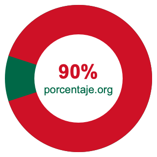 Empezamos por mostrarle el gráfico circular a continuación. Primero, coloreamos el círculo entero en verde. Luego, recortamos el 90 por ciento del círculo y lo coloreamos en rojo.