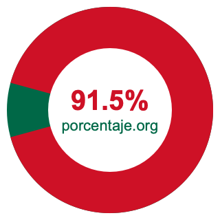 Empezamos por mostrarle el gráfico circular a continuación. Primero, coloreamos el círculo entero en verde. Luego, recortamos el 91.5 por ciento del círculo y lo coloreamos en rojo.