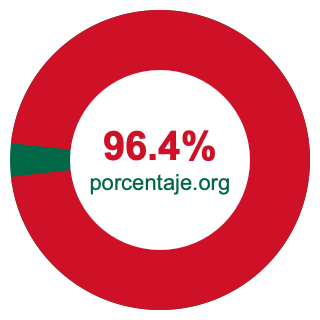 Empezamos por mostrarle el gráfico circular a continuación. Primero, coloreamos el círculo entero en verde. Luego, recortamos el 96.4 por ciento del círculo y lo coloreamos en rojo.