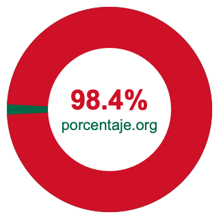 Empezamos por mostrarle el gráfico circular a continuación. Primero, coloreamos el círculo entero en verde. Luego, recortamos el 98.4 por ciento del círculo y lo coloreamos en rojo.