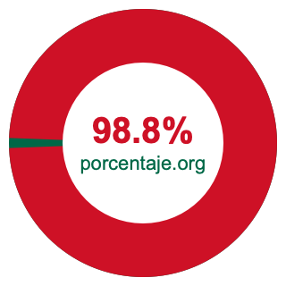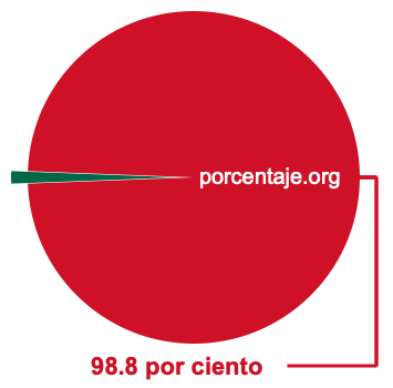 Empezamos por mostrarle el gráfico circular a continuación. Primero, coloreamos el círculo entero en verde. Luego, recortamos el 98.8 por ciento del círculo y lo coloreamos en rojo.