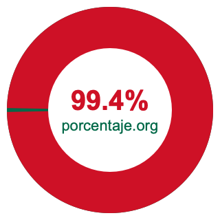 Empezamos por mostrarle el gráfico circular a continuación. Primero, coloreamos el círculo entero en verde. Luego, recortamos el 99.4 por ciento del círculo y lo coloreamos en rojo.