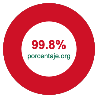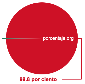 A continuación está otra manera de mostrar el 99.8 por ciento en un gráfico circular. Otra vez, primero coloreamos la imagen entera en verde, y luego coloreamos el 99.8 por ciento de la imagen en rojo.